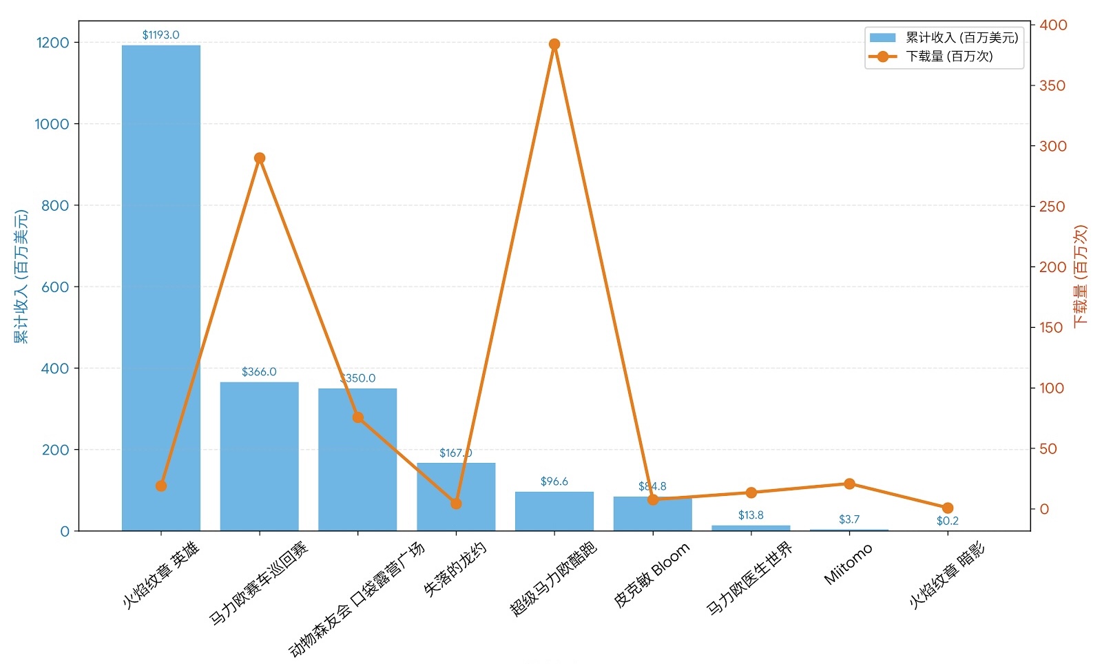 任天堂收入最高的手机游戏(按收入排名,到 2025 年第三季度)