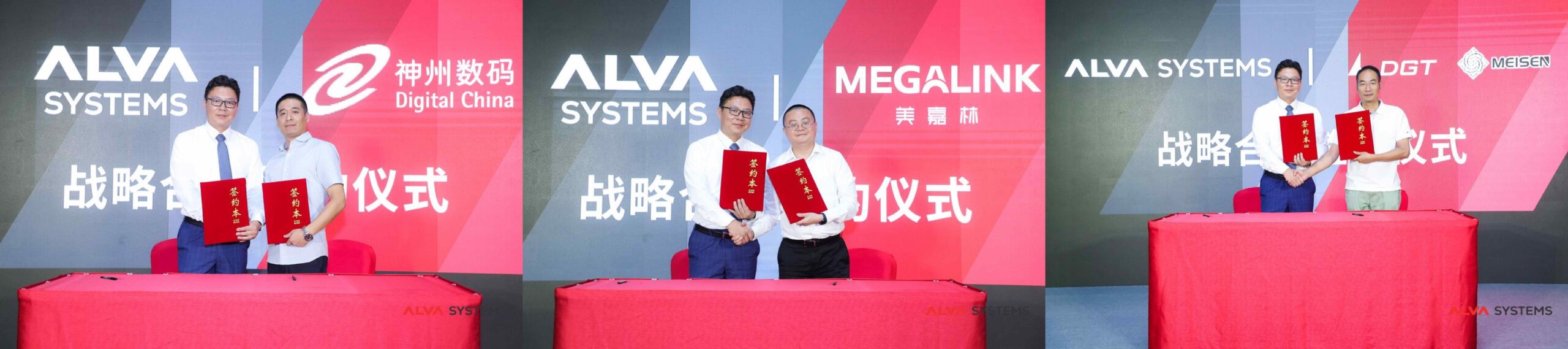 ALVA 与神州数码(左一)、美嘉林(左二)以及迪基透进行了现场签约